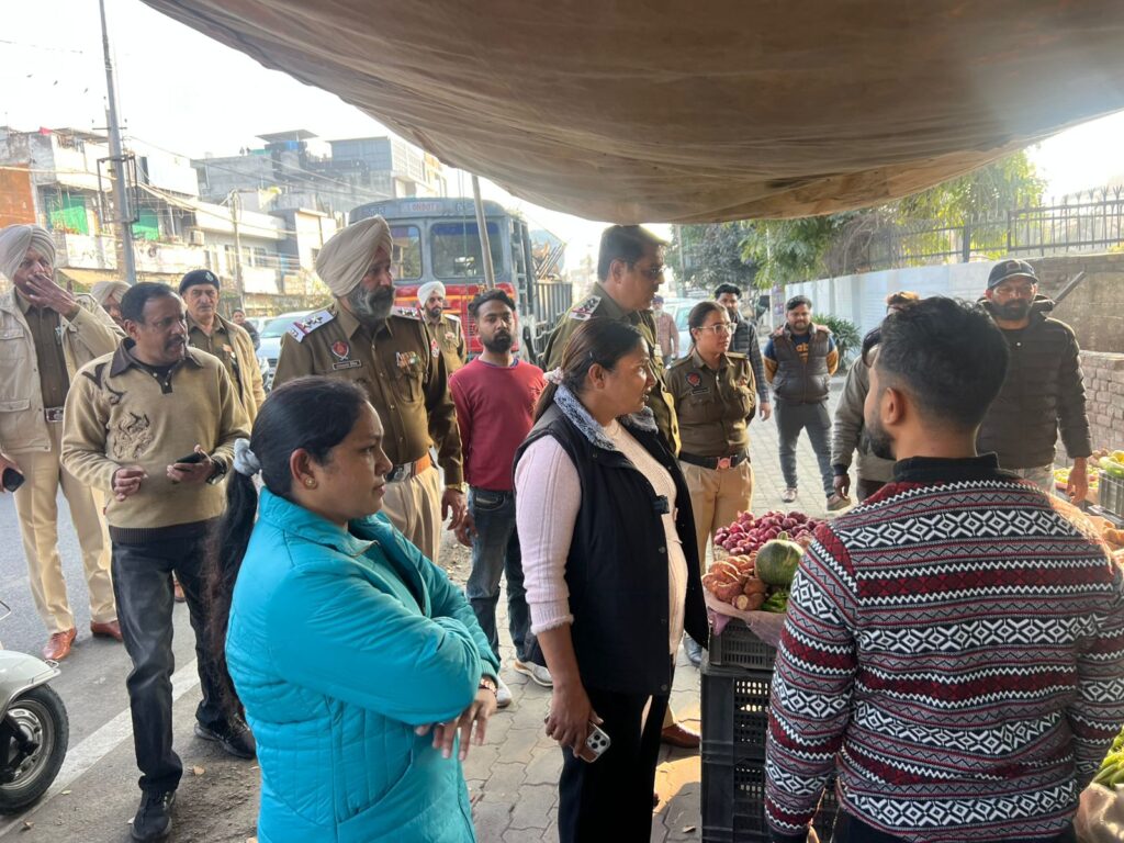 Amritsar, December 23, 2025 – Following directives from Commissioner Police Amritsar, Sri Gurpreet Singh Bhullar IPS, Additional Deputy Commissioner Police Traffic, Smt. Amandeep Kaur PPS, along with Traffic Zone Incharges, regulated traffic by removing illegal encroachments by shopkeepers and street vendors on roads and footpaths at Hall Liberty Market, Four S Chowk, and Majitha Road.