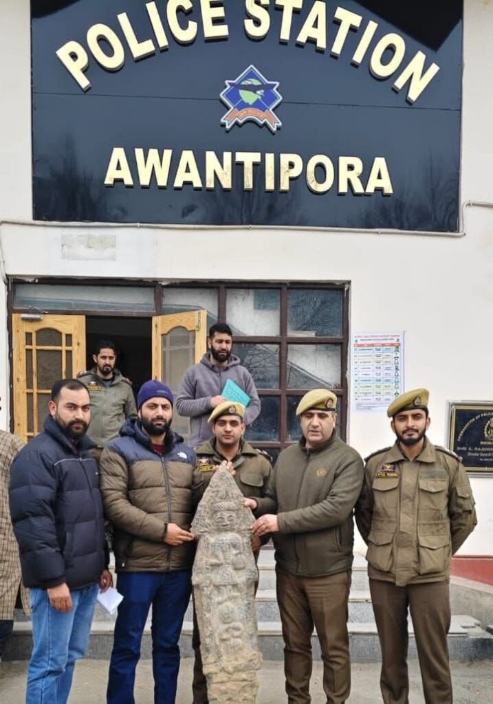 Awantipora Police swiftly secured a centuries-old stone sculpture discovered in the River Jhelum at Larkipora, handing it over to the Directorate of Archives, Archaeology & Museums, Jammu & Kashmir. The finely crafted artefact, symbolizing the region’s deep cultural heritage, underwent immediate protection under SHO supervision to prevent damage or theft.