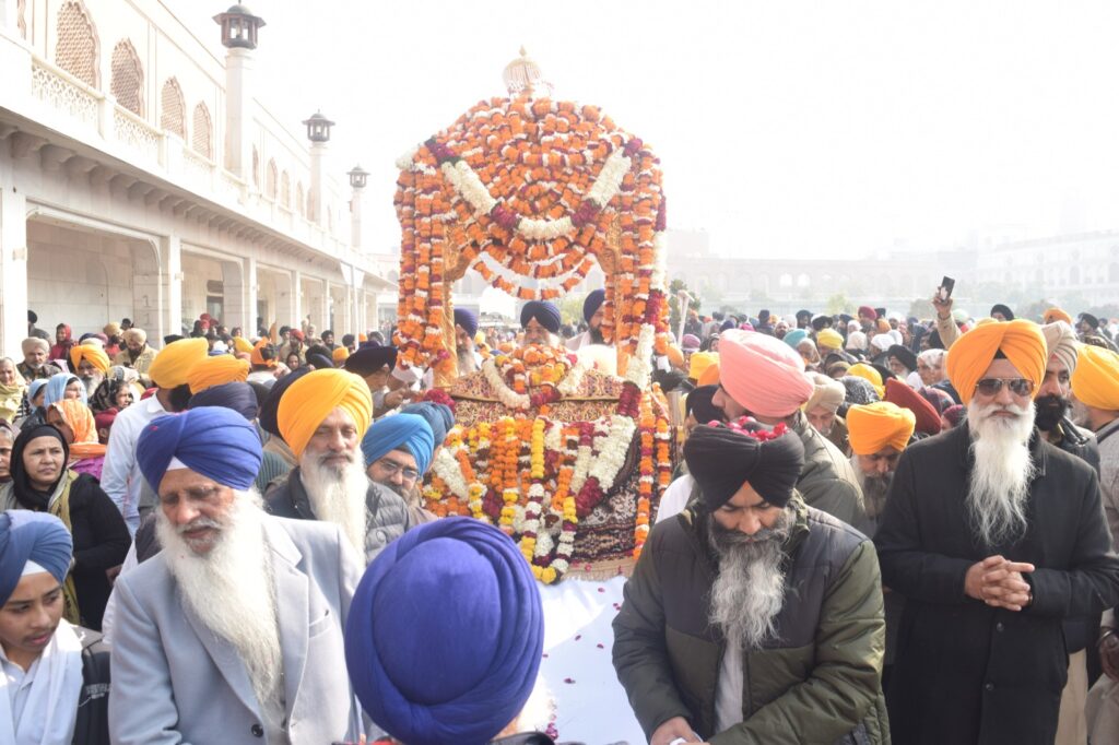 To commemorate the Prakash Gurpurab of Sri Guru Gobind Singh Ji, the tenth Sikh Guru, the Shiromani Gurdwara Parbandhak Committee (SGPC) organized a grand Nagar Kirtan today from the premises of Sri Akal Takht Sahib. The procession was held under the sanctified canopy of Sri Guru Granth Sahib Ji, led by the Panj Pyare (the Five Beloved Ones).